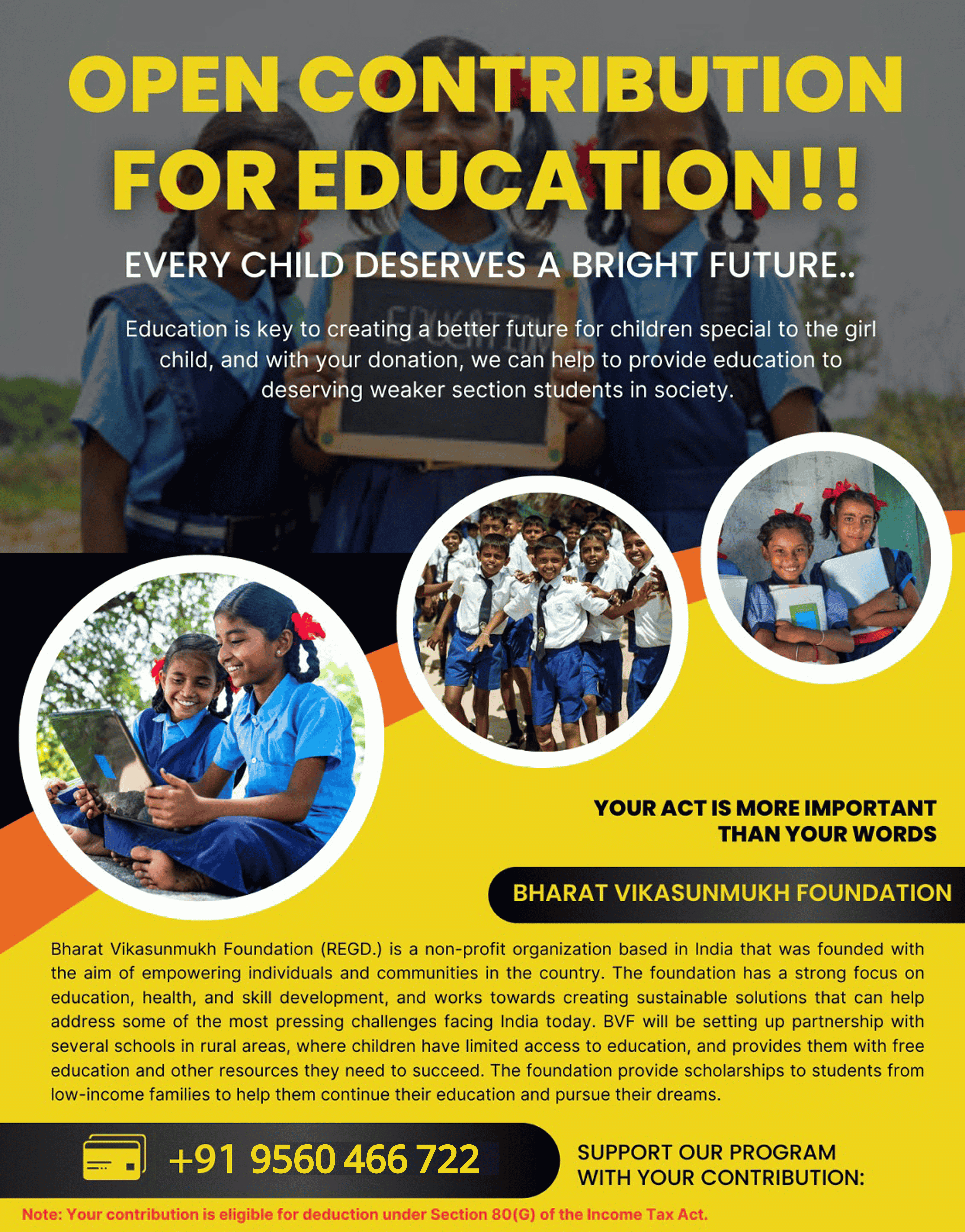 Request you to contribute for the education of underprivileged kids . To mark your contribution, Click on the below link: